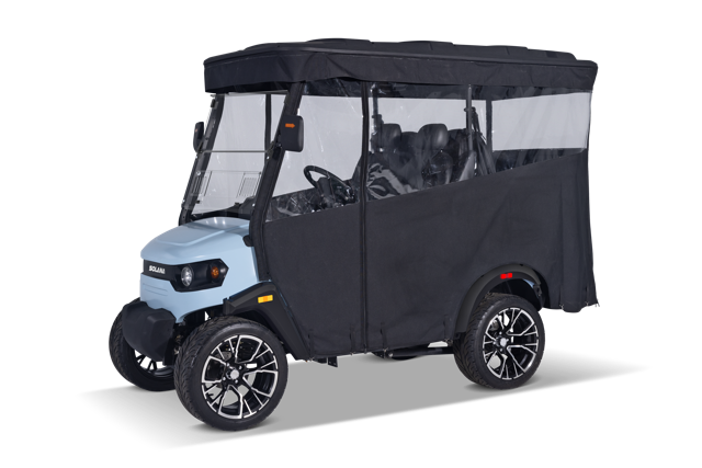 Protect your Solana EV golf cart year-round with our clear-view, roll-up enclosure. Durable, weatherproof, and custom-fit for Solana Model F 4P electric carts.